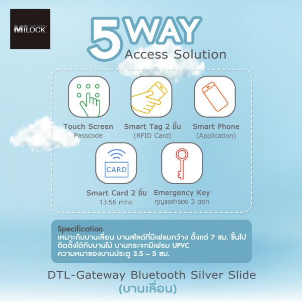 – สามารถปลดล็อคด้วย Smart Card หรือ RFID Card (13.56 MHz.)