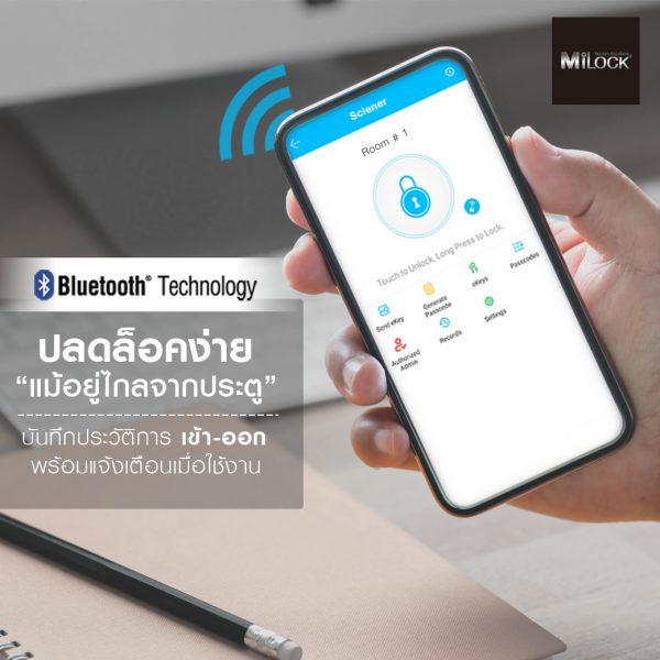 2. ปลดล็อคด้วย Application บนมือถือ ใช้ Bluetooth 2.4GHz.